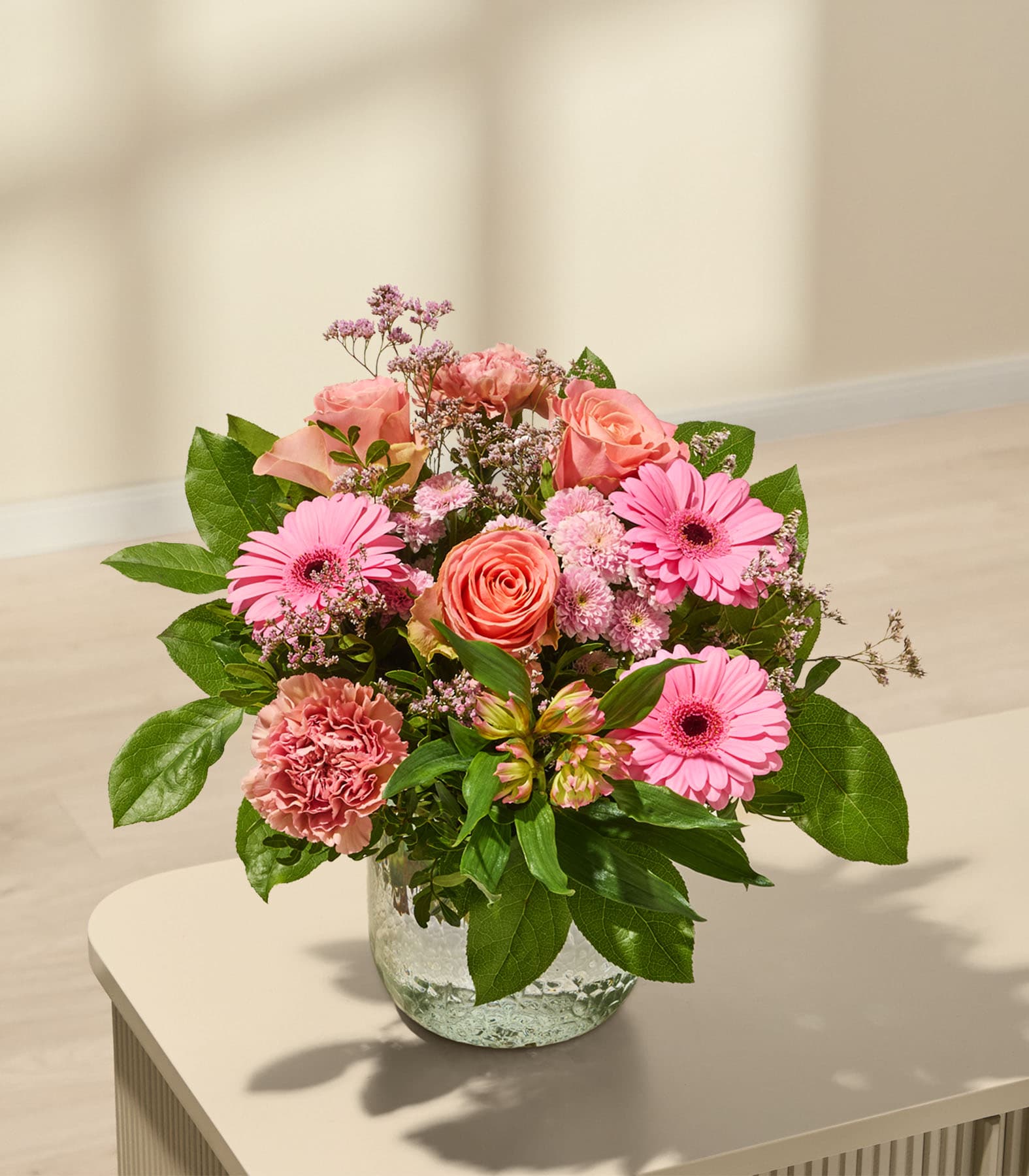 Mit dem Blumenstrauß Say Pink verschenkst du ein Stück Sommerglück in leuchtenden Pink- und Rosétönen. Die liebevoll arrangierten Alstromerien, Nelken, Chrysanthemen, Gerbera und Rosen, ergänzt durch feines Limonium und Salal, wirken verspielt und gleichzeitig elegant. Dieser Strauß bringt Frische und Farbe in jeden Raum und erinnert an blühende Gärten im Hochsommer. Die harmonische Komposition lädt dazu ein, innezuhalten und die kleinen, schönen Momente zu genießen. Ob als Überraschung für einen lieben Menschen oder als dekoratives Highlight: Say Pink ist ein fröhlicher Gruß, der von Herzen kommt und pure Lebensfreude ausstrahlt.